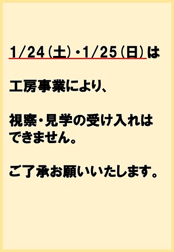 トップページ > イベント情報 > 【お知らせ】視察の受け入れ中止について